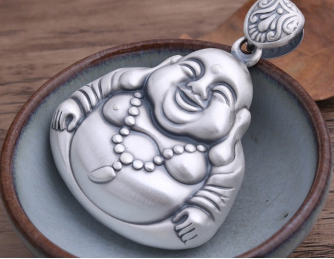 Đeo mặt dây chuyền hình Phật Di Lặc trên người sẽ giúp giảm bớt lo âu, mang lại tin vui, tránh tai nạn, tăng vận may tài lộc, sức khỏe và thành công. Những người thường xuyên làm việc trong môi trường cạnh tranh nên đeo mặt bạc này đề bớt đi thù địch, giúp tâm trí minh mẫn và đỡ căng thẳng hơn.